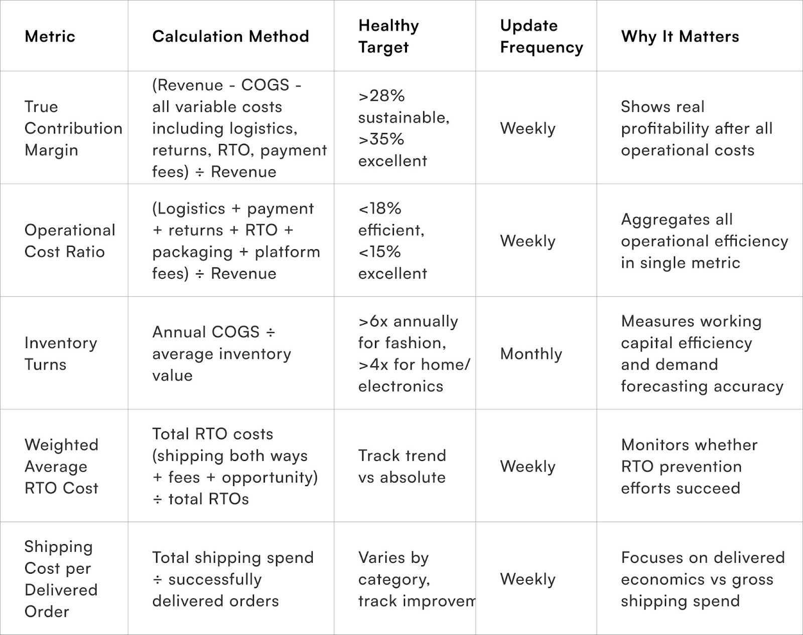 The exception is brands spending ₹1,200+ CAC for ₹2,000 AOV products with <30% repeat rates—this fundamental economics problem requires marketing efficiency alongside operational improvement. For most brands, 5 percentage point contribution margin improvement through operations enables sustaining current marketing investment whilst achieving profitability.