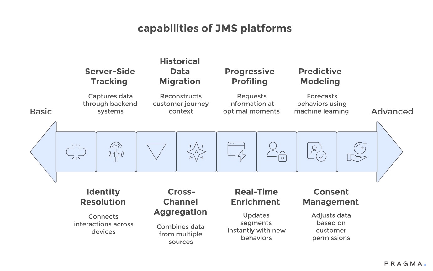 Applying machine learning to first-party data, JMS platforms can forecast future behaviors and identify expansion opportunities. These models predict churn probability, next purchase timing, and category affinity without needing third-party data supplements.