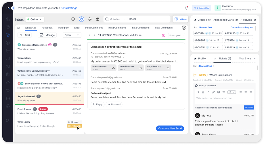 Create unlimited chatbots across WhatsApp, Messenger and Instagram for all possible scenarios like Order status, Payment issues, Returns etc.